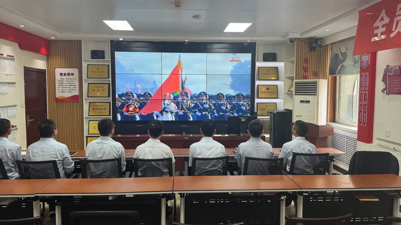 歷史燭照未來,精神永續(xù)傳承。為深切緬懷在抗日戰(zhàn)爭中英勇獻身的革命先烈,大力弘揚偉大的抗戰(zhàn)精神,引導全體黨員、職工銘記光輝歷史、堅定理想信念、強化責任擔當,9月3日,機運工區(qū)黨支部組織開展了“銘記歷史偉業(yè),傳承紅色基因”主題黨日活動,組織全體黨員集中觀看紀念中國人民抗日戰(zhàn)爭暨世界反法西斯戰(zhàn)爭勝利80周年閱兵儀式現(xiàn)場直播。上午九時整,機運工區(qū)全體黨懷著無比崇敬與激動的心情,目光齊聚屏幕。伴隨著激昂雄壯的國歌奏響,鮮艷的五星紅旗在天安門廣場冉冉升起,大家心潮澎湃,肅然起敬。隨后,規(guī)模宏大、氣勢磅礴的閱兵式正式開始。屏幕上,一個個整齊劃一、威武雄壯的徒步方隊,邁著鏗鏘有力、撼人心魄的步伐走過檢閱臺,堅毅的眼神、挺拔的身姿,充分展現(xiàn)了新時代軍人聽黨指揮的忠誠品格和能打勝仗的過硬本領(lǐng);一列列代表著國家科技實力與國防現(xiàn)代化建設最新成果的裝備方隊,鐵流滾滾,氣勢如虹,尖端武器依次亮相,彰顯了捍衛(wèi)國家主權(quán)、安全、發(fā)展利益的堅定決心與強大能力;雄鷹呼嘯,劃破長空,戰(zhàn)機編隊以精準的隊形和磅礴的氣勢接受檢閱,描繪出壯美的藍天畫卷,宣示著捍衛(wèi)國家領(lǐng)空安全的鋼鐵意志。整個閱兵過程,秩序井然、威武雄壯、氣勢恢宏,生動詮釋了人民軍隊“聽黨指揮、能打勝仗、作風優(yōu)良”的強軍目標,全方位展示了在黨的堅強領(lǐng)導下,國家日益強大的綜合國力和維護世界和平的堅定信念。屏幕前,黨員們?nèi)褙炞?,無不被這震撼人心的場面所感染,民族自豪感與榮譽感油然而生,現(xiàn)場不時響起由衷的贊嘆和熱烈的掌聲。通過本次“銘記歷史偉業(yè),傳承紅色基因”主題黨日活動,機運工區(qū)黨支部全體黨員經(jīng)歷了一次深刻的精神淬煉與思想升華。大家的歷史使命感、民族自豪感、崗位責任感得到顯著增強,紛紛表示以更加飽滿昂揚的精神狀態(tài)、更加求真務實的工作作風、更加開拓創(chuàng)新的進取意識,恪盡職守,銳意進取,全力以赴保障原煤運輸安全高效,為工區(qū)及公司的持續(xù)高質(zhì)量發(fā)展貢獻全部力量!